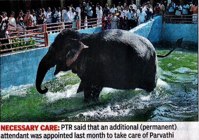 Madurai: Meenakshi Sundareswarar temple elephant Parvathi is getting more attention and care now than at any point earlier, said IT and digital services minister Palanivel Thiaga Rajan here on Saturday. He was responding to a tweet by Our Temple Our Pride Our Rights Foundation founder Rangarajan Narasimhan on the health and care given to the elephant.