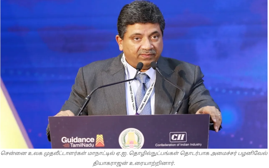 இக்காலக்கட்டத்தில் இந்த ஏ.ஐ தொழில்நுட்பத்தை பயன்படுத்தி வேலை வாய்ப்புகளை உருவாக்கவும், பறிக்கவும் முடியும்” என்றார். மேலும் மனிதர்களால் ஏற்படும் அழிவு மற்றும் இழப்புகளை ஏ.ஐ. தொழில்நுட்பங்களை பயன்படுத்தி சரி செய்யலாம் எனக் கூறிய பி.டி.ஆர். பழனிவேல் தியாகராஜன், “பல்வேறு நாடுகளில் ஏ.ஐ. தொழில்நுட்பத்தை பயன்படுத்தி தேர்தல்களில் முறைகேடுகள் செய்வதையும் பார்க்க முடிகிறது” என்றார்.