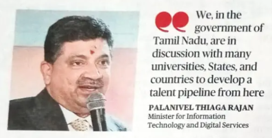 Addressing a gathering, the Minister highlighted the significant contribution of Christian missionaries towards the development of the education and healthcare systems. Lauding the collaboration between Stella Maris and TWU, he said "We, in the government of Tamil Nadu, are in discussion with many universities, States, and Countries to develop a talent pipeline from here" Mr. Rajan interacted with the students on Artificial Intelligence (AI) and the robotics revolution that began in the late 1980s.